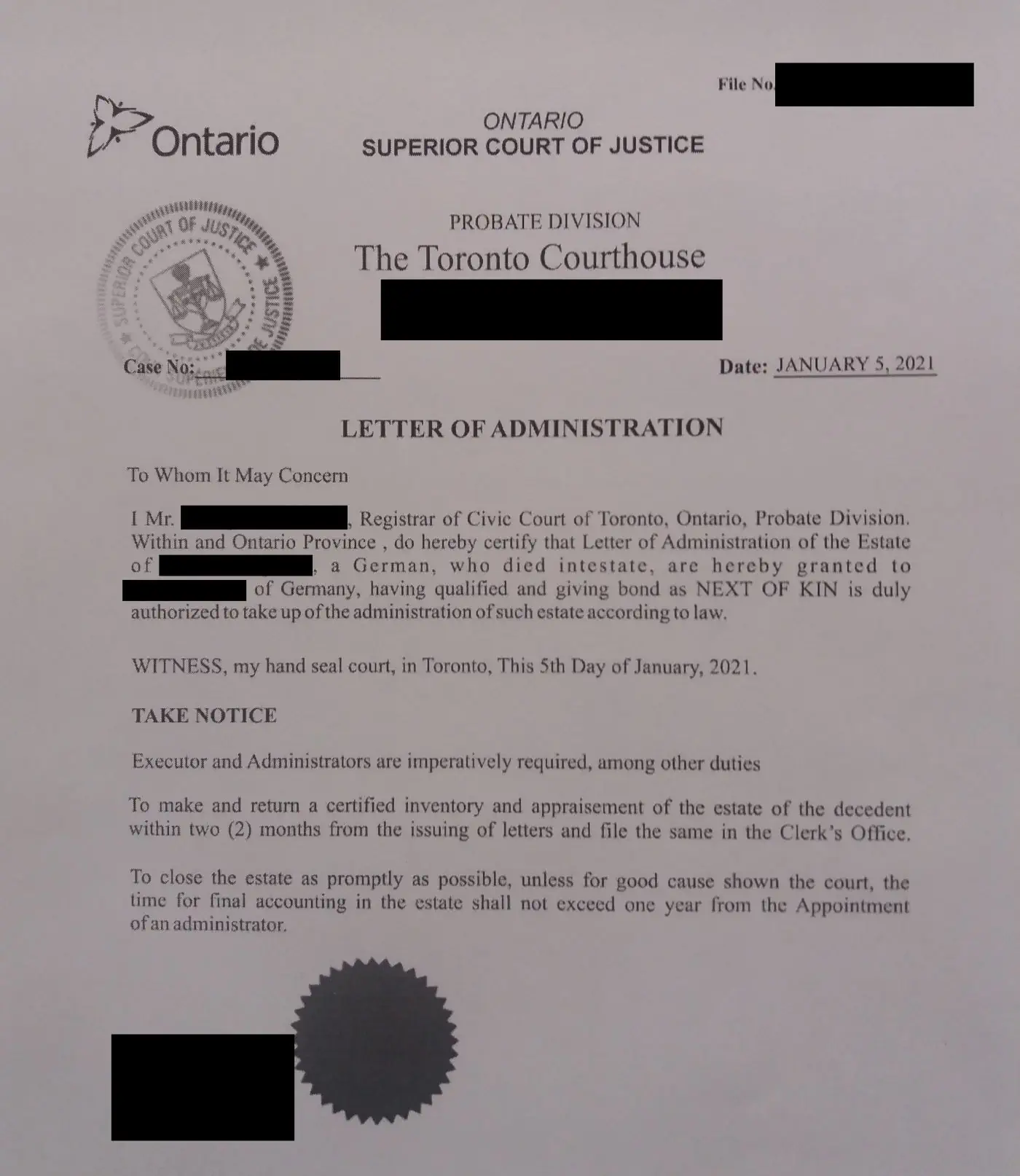 In den meisten Provinzen verfügen wir über lokale Kräfte. Relativ schnell haben Sie dann Gewissheit, ob Sie wirklich glücklicher Erbe sind oder im Fokus von Betrügern stehen und ob es das Vermögen in Kanada gibt.